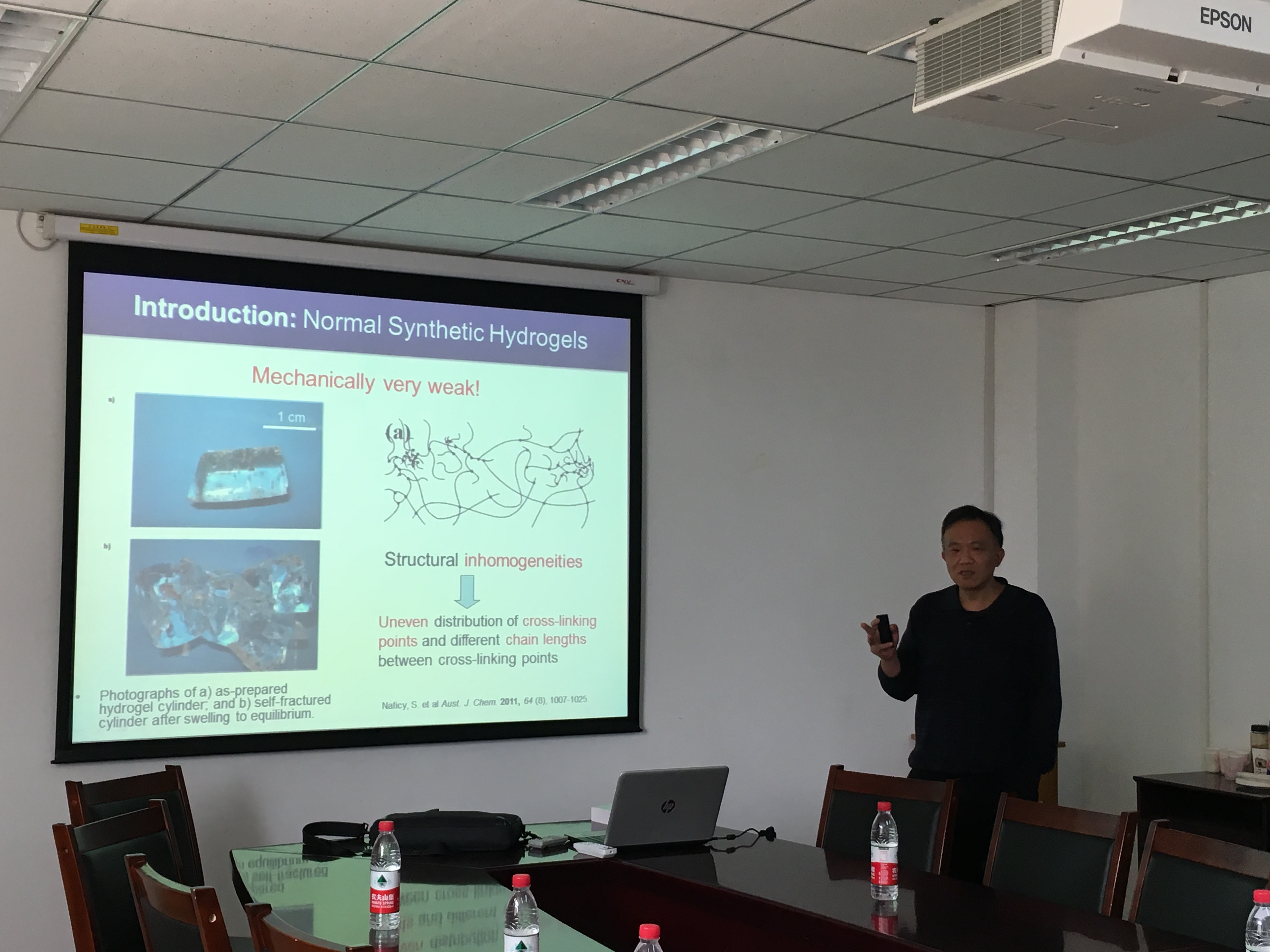 2017年3月16日下午,在化学院工会的组织和促进下,本年度第一期全讯600cc大白菜官网青年学术沙龙在化学楼314室举行。本次主讲嘉宾是高分子化学与物理专业的汪辉亮教授,全讯600cc大白菜官网部分青年教师、研究生代表参加了本次活动。汪辉亮教授结合本组科研方向和进展,做了题为“具有优异力学性能的水凝胶”的主题报告,报告结合自身的科研经历,深入浅出、内容丰富而详实,引起了相关领域研究工作者和研究生的极大兴趣。随后,汪辉亮教授与在座师生进行了热烈的讨论并就相关问题进行了深入的交流探讨。
